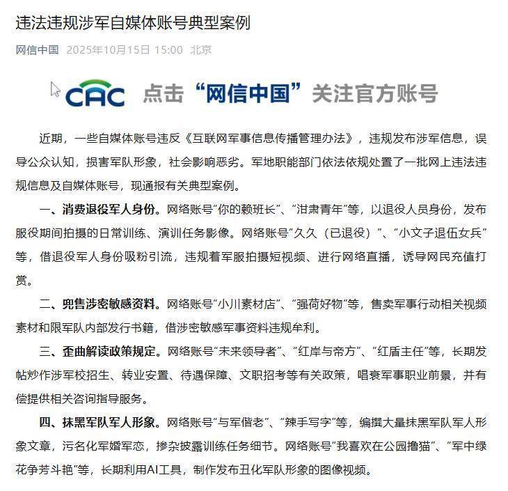 在线股票配资门户网站 违规发布涉军信息,一批自媒体账号被处置